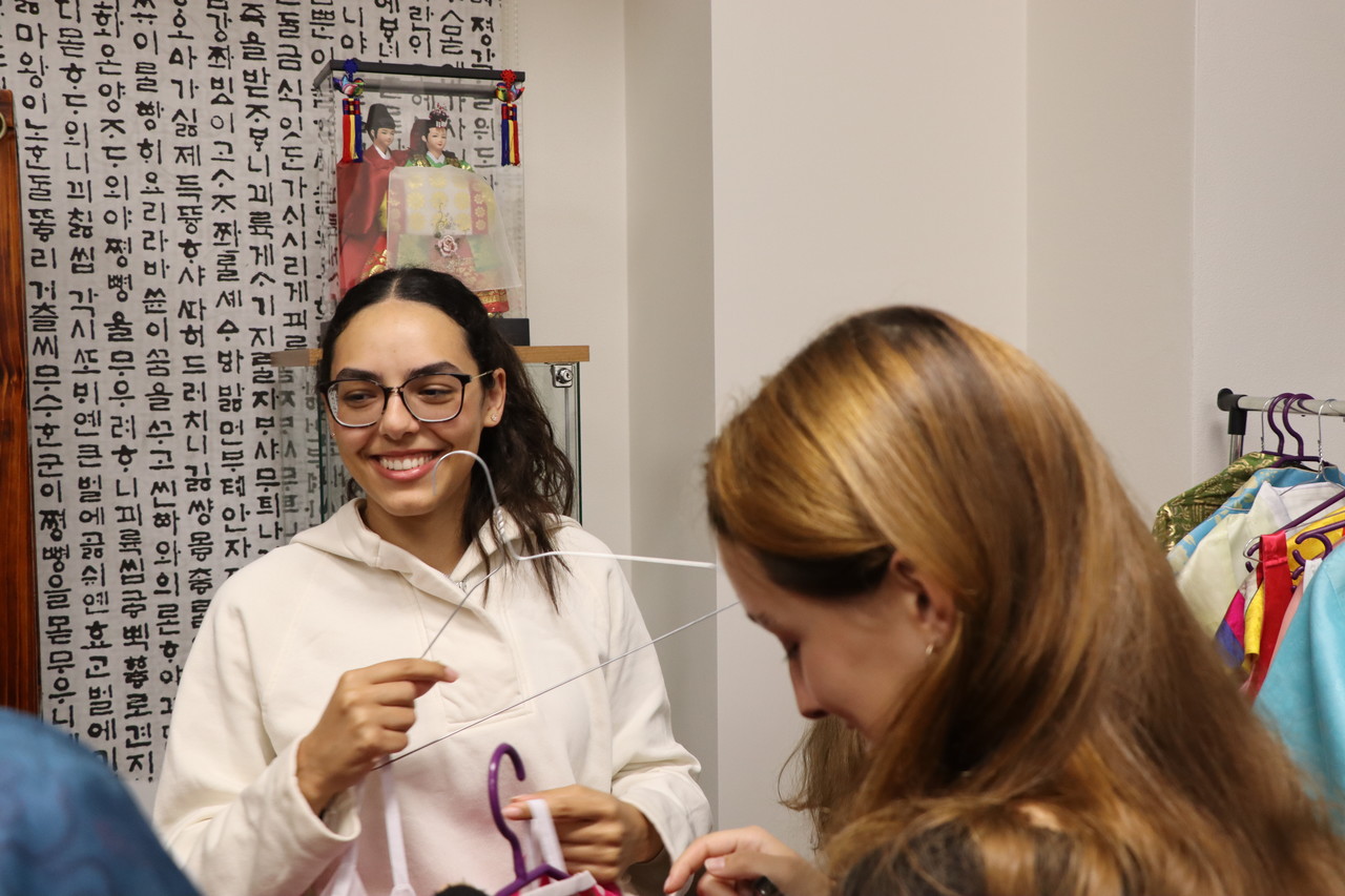 Dne 9. 10. 2025 se uskutečnila akce International Haná, během které jste měli příležitost navštívit mimo jiné i náš stánek. Příchozí si mohli vyzkoušet hanbok a ochutnat korejské sladkosti a čaj. Nechybělo ani vyrábění záložek, na které jste si mohli napsat své jméno pomocí hangulu.