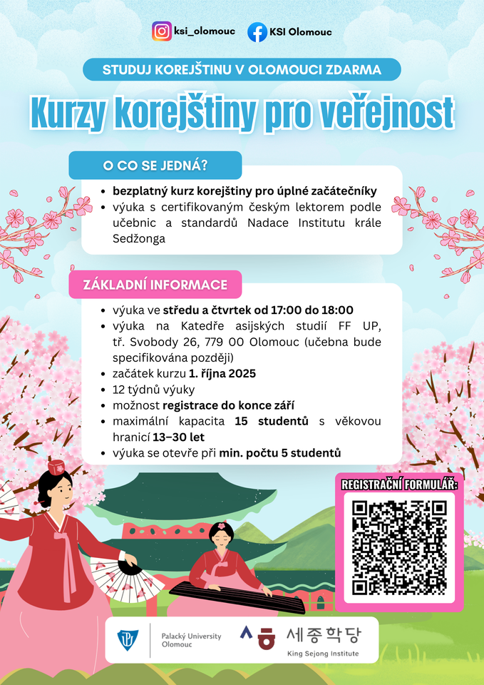 Prosíme účastníky předchozího workshopu, aby se znovu neregistrovali, a nechali možnost dalším zájemcům. Pokud se na workshop dostavit nemůžete, registraci zrušte emailem na kingsejong@upol.cz nebo nás kontaktujte na sociálních sítích!