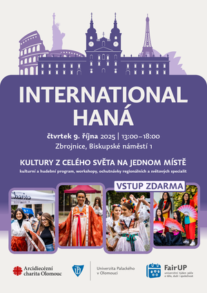 UP Welcome Office and the Archdiocesan Charity Olomouc cordially invite you to the International Haná festival taking place on 9 October at the Armoury Library. Experience a line-up of exceptional live music and dance, authentic cuisines from across the globe, workshops, exhibitions, and a welcoming children’s zone. You will also meet people from diverse backgrounds and discover new perspectives, all in one unforgettable day!
