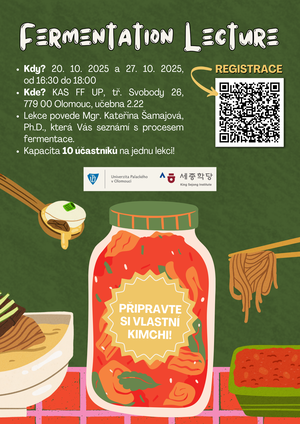 Ve dnech 20. 10. a 27. 10. 2025 se na Katedře asijských studií FF UP uskuteční lekce zaměřené na fermentaci. S procesem fermentace Vás seznámí Mgr. Kateřina Šamajová, Ph.D.