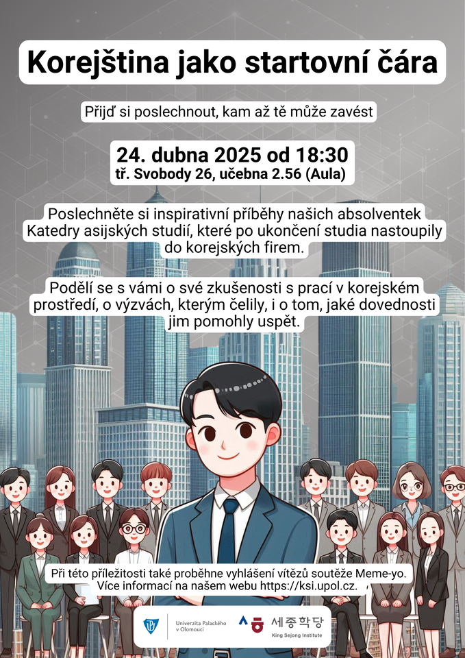 Dne 24. dubna 2025 se uskutečnila přednáška na téma "Korejština jako startovní čára". Naše absolventky sdílely své příběhy, diskutovaly o zkušenostech s prací v korejském prostředí, o dovednostech, které jim umožnily uspět, a o tom, co je na jejich cestě posunulo dál.