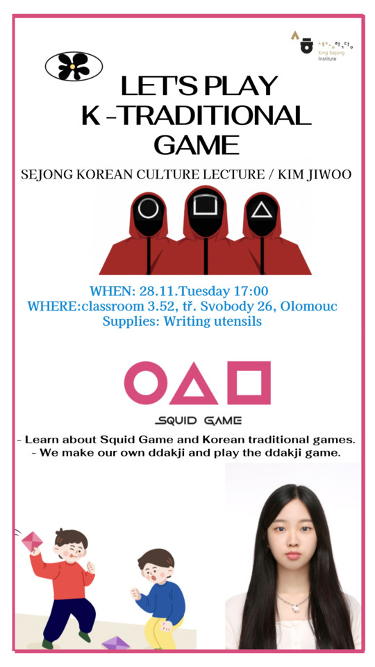 Srdečně všechny zveme na kulturní přednášku naší korejské lektorky Kim Jiwoo o tradičních korejských hrách.
