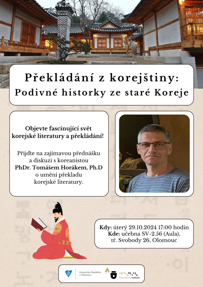 Institut krále Sedžonga srdečně zve všechny zájemce o korejskou literaturu a kulturu na přednášku a diskuzi s koreanistou a překladatelem PhDr. Tomášem Horákem, Ph.D.