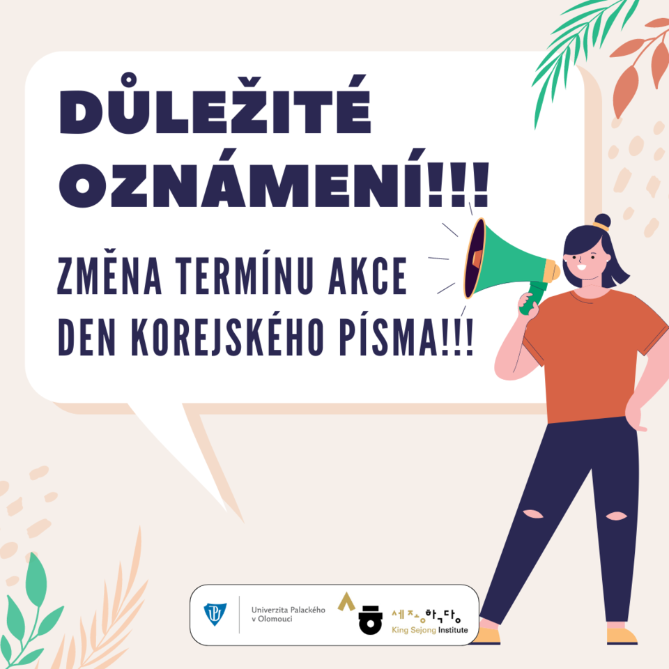 DŮLEŽITÉ OZNÁMENÍ!!! ZMĚNA TERMÍNU AKCE DEN KOREJSKÉHO PÍSMA!!!
